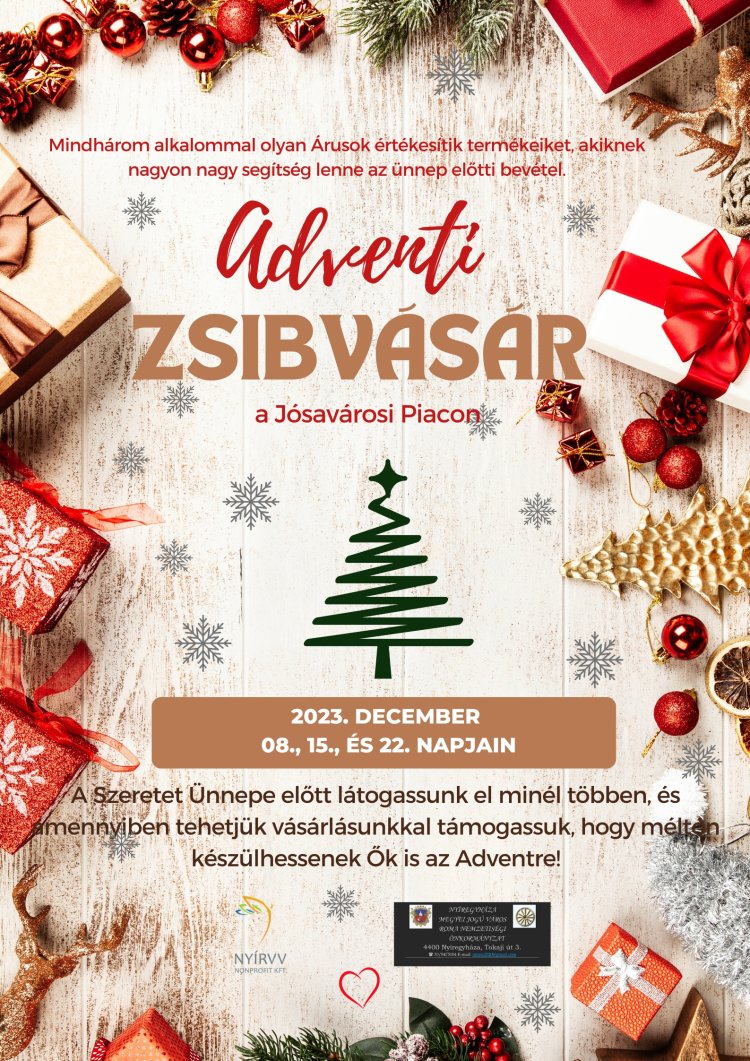 A NYÍRVV Nonprofit Kft. 2023. december 08., 15. és 22. napján a Jósavárosi Piacon Adventi Zsibvásárt rendez.