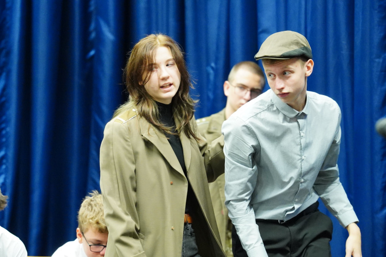 Az ünnepi műsort az Eötvös József Gyakorló Általános Iskola és Gimnázium diákjai adták elő „Volt egy tánc…” – emlékezés ’56 hőseire címmel. A 10.a, 10.b és 11.a osztály tanulói megrázó párbeszédeken és táncjeleneteken keresztül idézték meg az 1950-es évek félelemben és bizonytalanságban telt mindennapjait.
