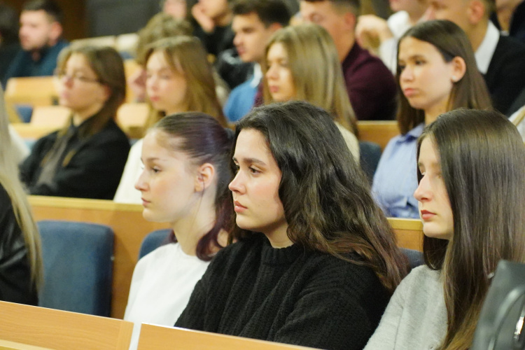 Ünnepi műsorral tisztelegtek a Nyíregyházi Egyetemen az 1956-os forradalom és szabadságharc hősei előtt 2025. október 22-én. Az egyetem B épületének nagyelőadójában tartott megemlékezésen egyetemi oktatók, hallgatók, diákok és meghívott vendégek hajtottak fejet a 69 évvel ezelőtti események áldozatai és hősei előtt.