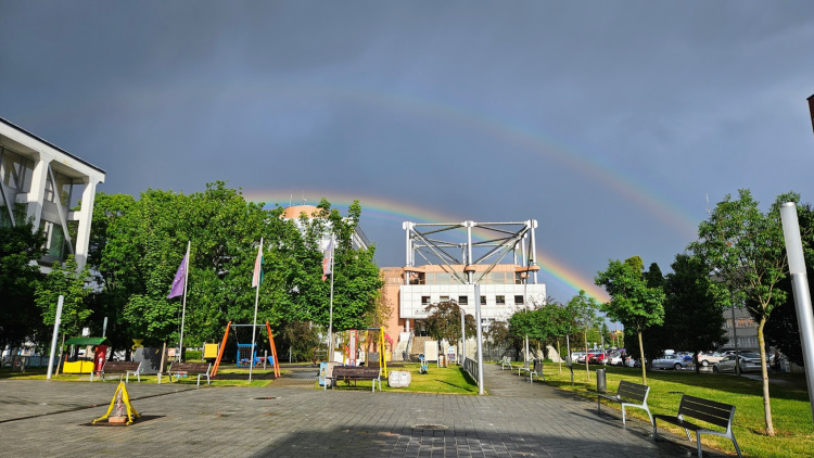 Szivárványt rajzolt az égre a májushoz képest szokatlan, változékony, már-már bolondos időjárás. Ha valaki átaludta az elmúlt három hetet azt hiheti, még áprilist írunk. Hétfő reggel esőre ébredtünk, majd kisütött a nap, és ez így folytatódott egész nap. Estére aztán egy könnyű zápor után a keleti égbolton kettős szivárványt láthattak a nyíregyháziak.