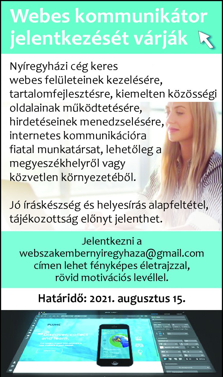 Internetes kommunikációban jártas szakember jelentkezését várják