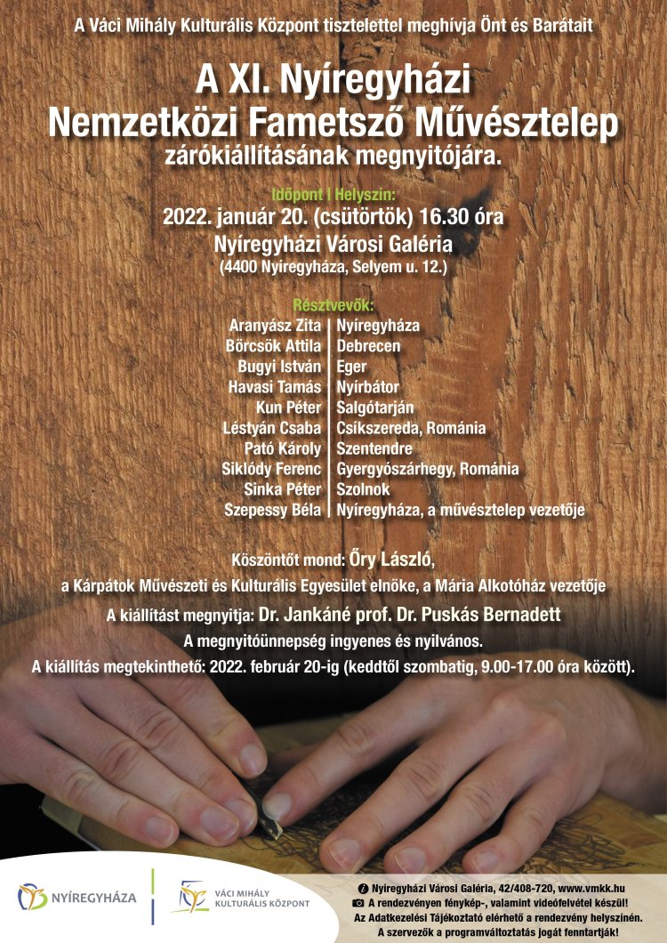A XI. Nyíregyházi Nemzetközi Fametsző Művésztelep alkotóinak zárókiállítása nyílik január 20-án a Városi Galériában. A tíz kiállító művész munkái február 20-ig tekinthetők meg.