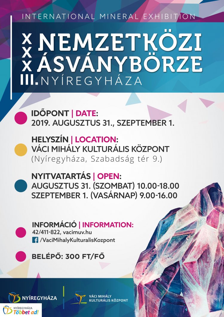 Immár 33. alkalommal rendeznek nemzetközi ásványbörzét Nyíregyházán. Az érdeklődőket augusztus 31-én és szeptember 1-jén a Váci Mihály Kulturális Központba várják.