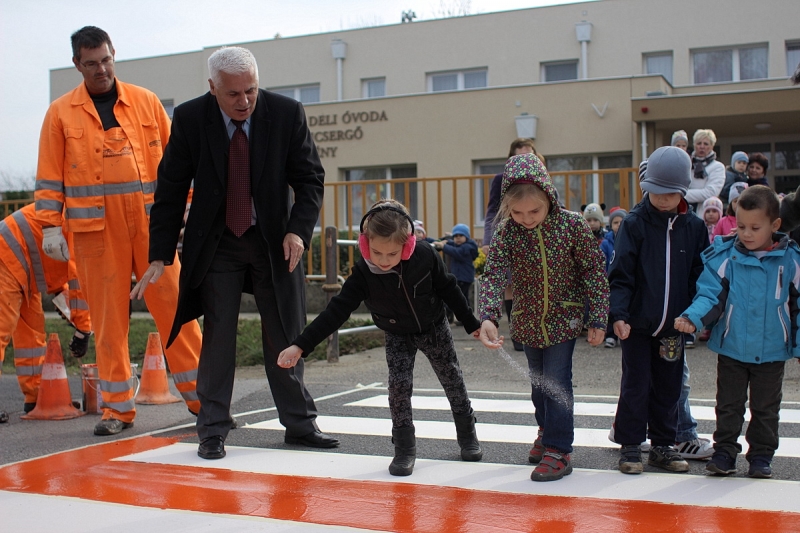 - Már több mint 10 éve kérték az itt lakók - kezdte a polgármester, dr. Kovács Ferenc. - Tulajdonképpen a városlakók kezdeményezték, hogy legyen itt egy zebra, mert soha nem volt. Mikor tavaly az óvodát felújítottuk, akkor megígértem, hogy ezzel is foglalkozunk majd. Sikerült is megvalósítani. Sokan nem tudják, hogy nem olyan egyszerű egy zebrát létrehozni. Van egy engedélyeztetési része és hát ez is kétmillió forintba került.