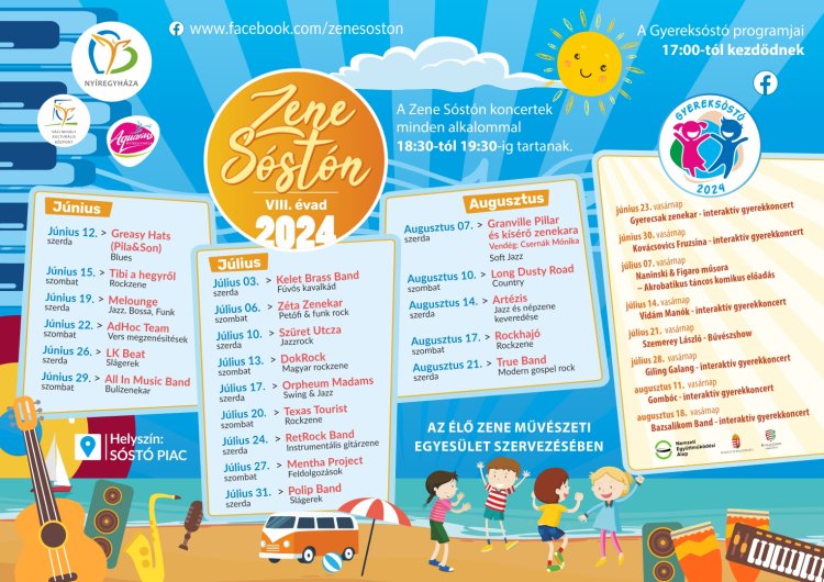 Idén is elindul a nyíregyháziak, valamint a városunkba érkező turisták egyik kedvenc programsorozata, a Zene Sóstón. Június 14-től augusztus 23-ig szerdai és szombati napokon koncertek fogadják majd az érdeklődőket este fél 7-től a Sóstói Piacon.