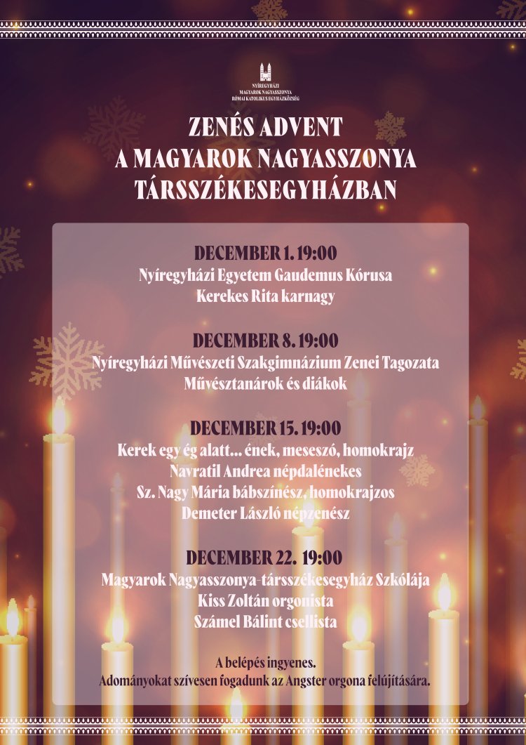 Zenés advent - Négy vasárnap szól majd a karácsonyi muzsika a társszékesegyházban