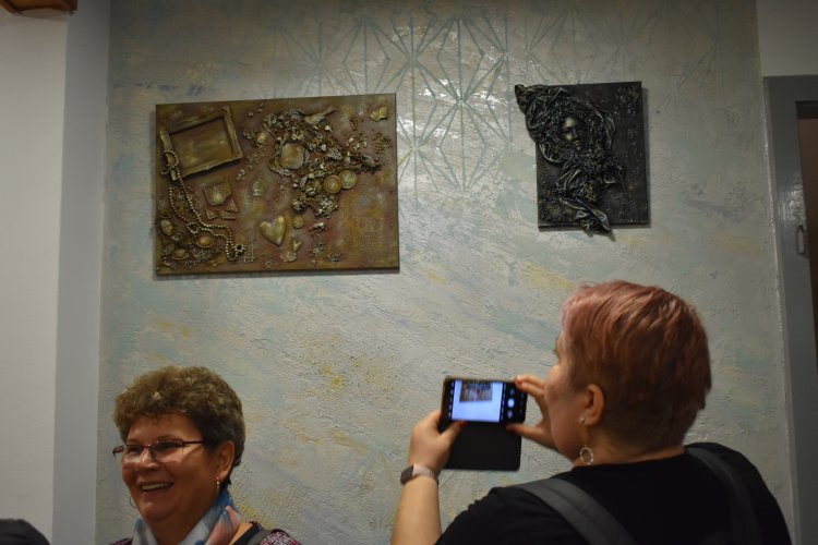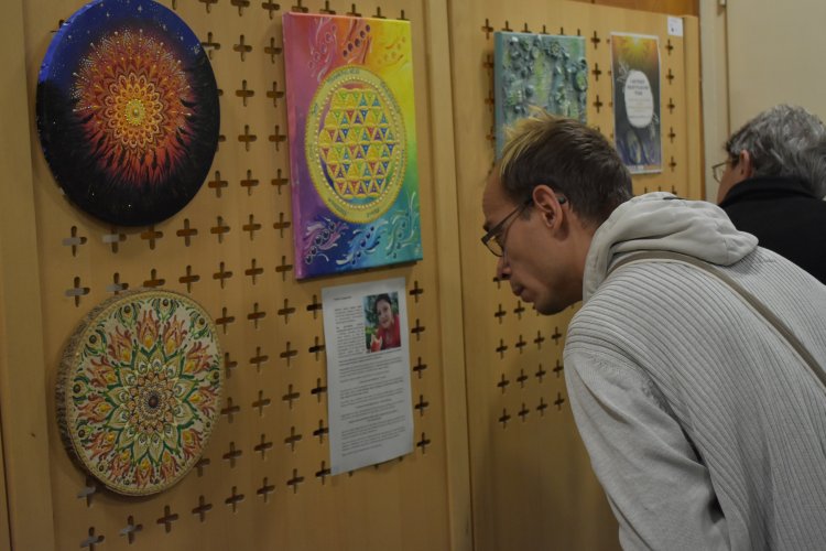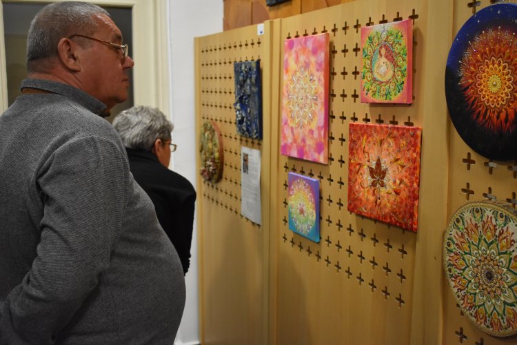 Nyitrainé Ferencz Gyöngyi (mandala) és Papp Diána (textilszobrászat) alkotásaiból készült kiállítást a Vasutas Művelődési Házban nyitották meg.