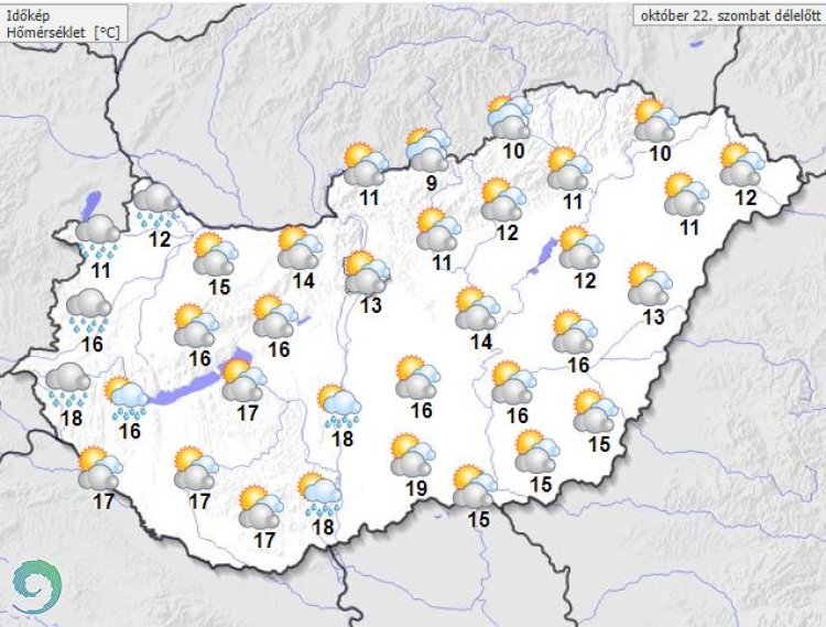 Szombaton a nap első felében többnyire közepesen és erősen felhős lesz az ég, de időszakosan tartósabban elvékonyodhat a felhőtakaró. A déli óráktól nyugat felől átmenetileg mindenhol beborul az ég, és egyre több helyen várható eső, zápor, délnyugaton egy-egy zivatar sem kizárt. Estétől északnyugat felől csökkenni kezd a felhőzet – írta honlapján az Országos Meteorológiai Szolgálat.