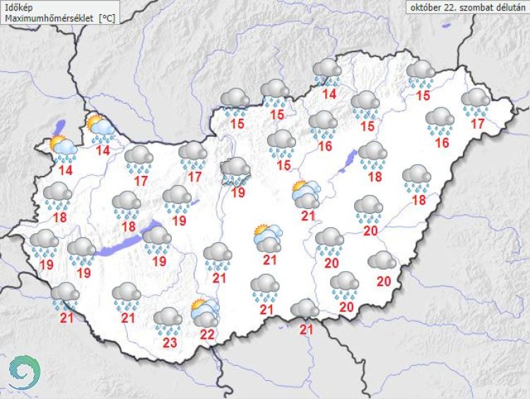 A legmagasabb nappali hőmérséklet általában 17 és 23 fok között várható, de északkeleten csak 13, 15 fok valószínű.
