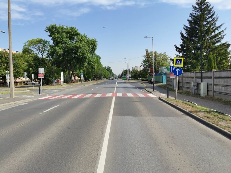 A Korányi úton is zöld keretbe került a jó láthatóság miatt a gyalogátkelőhelyet jelző kresztábla. Az okoszebra már másfél éve jól szolgálja a gyalogosok védelmét, most ezzel is szeretnék az átkelőket védeni.