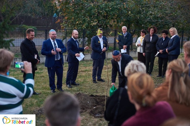 Beszélgető partnerek voltak, Dr. Róna Tamás főrabbi, valamint Kósa László református lelkész. A jó hangulatú beszélgetést az egyházközség templomkertjében közös faültetés követte.